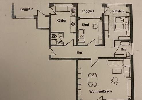( Hochwertiger Laminat und Fliesen ). Das Bad wird noch nach Rücksprache saniert!! Die Fenster sind aus Kunststoff und Isolierverglasung. Die Wohnung verfügt über drei Balkone bzw. Loggien und dies jeweils an der vor und Rückseite der Wohnung mit jeweils auch einen schönen Ausblick. Zu der Wohnung gehört eine nagelneue Einbauküche mit hochwertigen Elektro Geräten für die eine Miete von 40.00 Euro zur Kaltmiete hinzugerechnet werden muss, sowie ein Vorratsraum, ein Bad mit Duschabtrennung und Toilette, ein Gäste WC sowie einen großen Keller im EG Bereich des Hauses. In allen Räumen sind attraktive, stromsparende Lampen bereits angebracht worden. Eine Garage ist ebenfalls vorhanden mit kurzen Wegen ins Haus.