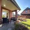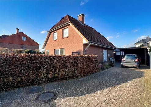 Die nach Westen ausgerichtete Terrasse ist teilweise überdacht. Das Grundstück bietet aufgrund seiner Ausrichtung und Größe viel Platz für sonnige Sitzplätze. Ein Einzelcarport befindet sich unweit des Hauseingangs und die Zufahrt zum Haus bietet Platz für weitere PKW.