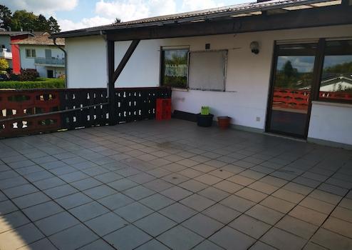 Die Terrasse muss neu abgedichtet werden, bietet dafür aber enormes Potential für gemütliche Stunden im Freien.