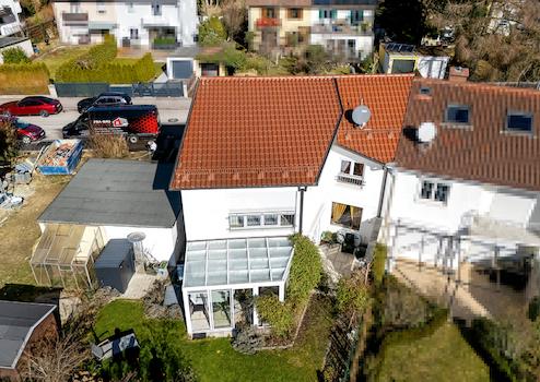 Die Doppelhaushälfte ist in einer ruhigen 30er-Zone gelegen und befindet sich auf einem schönen Eckgrundstück mit Süd-West-Ausrichtung. Somit erhalten das Wohnzimmer und der Garten so viele Sonnenstunden wie nur ...