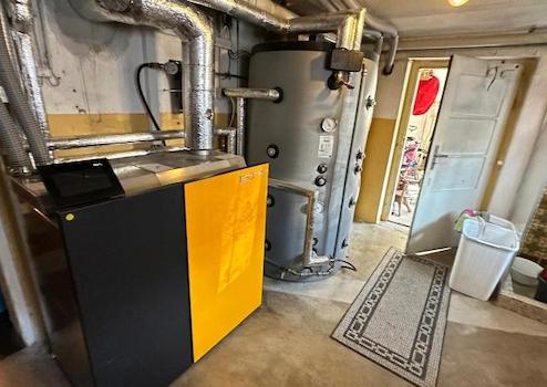 Nach dem vorliegenden Energieverbrauchsausweis liegt der aktuelle Energieverbrauch des 1950/76 erstellten, mit Pellets beheizten Hauses bei 168,1 kWh/(m²*a).