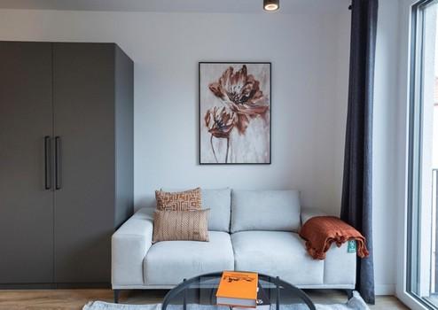 Experience contemporary city living in this stylish micro-apartment, located in a newly built residence with an elevator. Designed for comfort and convenience, this fully furnished space offers a smart layout, maximizing every square meter to create a cozy yet functional home.