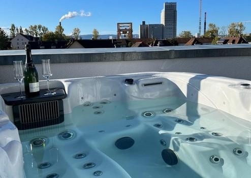 Die Wohnung verfügt über insgesamt 6 Schlafplätze für bis zu 10 Personen und eignet sich ideal für Geschäftsreisende, Familien oder anspruchsvolle Mieter, die eine vollständig ausgestattete Unterkunft suchen. Ein besonderes Highlight ist der integrierte Whirlpool, der für entspannte Stunden sorgt und das Premium-Wohngefühl unterstreicht.