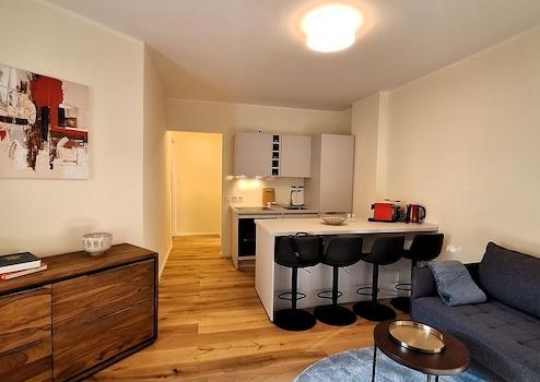 Die Wohnung wurde kürzlich frisch renoviert und neu möbliert. Die Küche ist mit hochwertigem Geschirr und hochwertigen Geräten voll ausgestattet. Die Miete wird auf All-inclusive-Basis angeboten und beinhaltet die Möbel, Küche, Internet sowie Heizung und Strom.