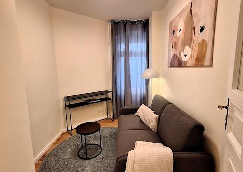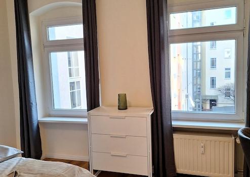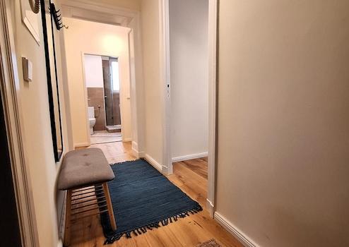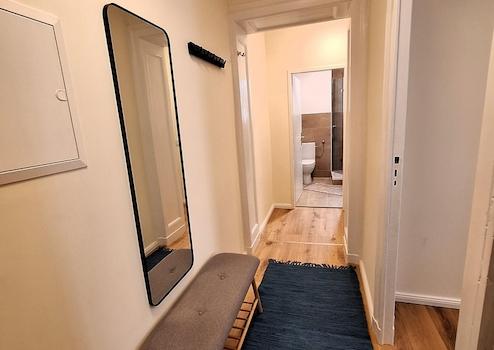 The apartment has been recently renovated and newly furnished. The kitchen is fully equipped with high-quality dishes and appliances. The rent is offered on an all-inclusive basis and includes furniture, kitchen, internet, heating, and electricity.