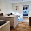Die angebotene Wohnung verfügt über ein geräumiges Schlafzimmer, ein offenes Wohnzimmer mit moderner Küche und Essbereich sowie ein Arbeits- oder Gästezimmer.