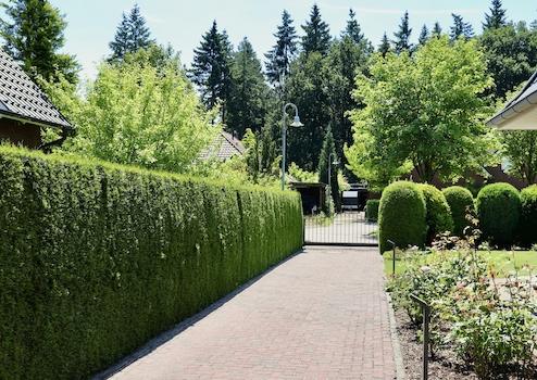 Eine schön angelegte, lange Zufahrt führt direkt zum Eingang des Hauses, hier können Sie Ihr Fahrzeug bequem unter dem Carport oder auf der Zufahrt abstellen. Der Carport mit separatem Abstellraum bietet ausreichend Platz für Gartengeräte, Gartenmöbel, Fahrräder und Kaminholz. Das ca. 614 qm große Grundstück ist pflegeleicht angelegt, die gesamte Rasenfläche wird von einem Mähroboter der Firma Husqvarna kurzgehalten. Das Haus wurde mit einem großzügigen Abstand zur Grundstücksgrenze und den angrenzenden Nachbarn errichtet.
