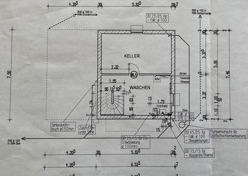Der Keller hat eine Nutzfläche von ca. 46 qm, besteht aus zwei Räumen und verfügt über die Anschlüsse für Waschmaschine und Trockner.