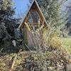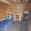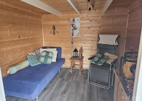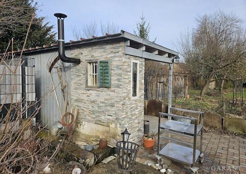 kleinem Teich und wohnlichem Gartenhaus