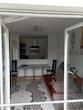 Die Einbauküche ist durch eine Brüstung vom Wohn-/Essbereich abgetrennt.