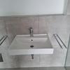 Das Bad hat eine bodentiefe Dusche mit Glastrennwand und Badewanne, WC und 2 St. eleganten Waschtischen