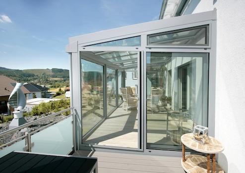 große überdachte Terrasse (zum Öffnen und schließen.)