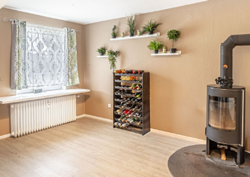 hochwertige Kaminofen (Baujahr 2021) spendet an kühlen Abenden unvergleichliche Gemütlichkeit.
