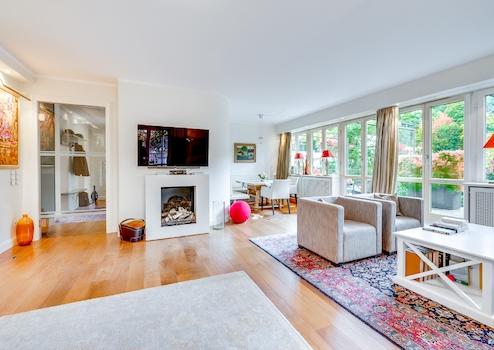 Die Wohnung liegt in einem gepflegten Anwesen, das diskreten Luxus und stilvolle Zurückhaltung ausstrahlt – ganz im Sinne der ruhigen und renommierten Nachbarschaft des Herzogparks.