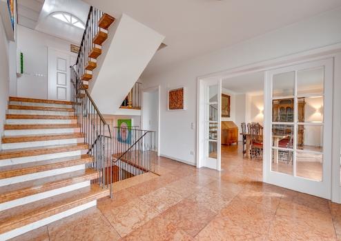Dieses exklusive Einfamilienhaus in Freising bietet auf über 1.000 m² Grundstücksfläche ein luxuriöses und großzügiges Wohnambiente. Schon im hellen und offenen Eingangsbereich beeindruckt der edle, rote Marmorboden, ...