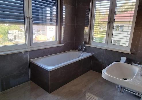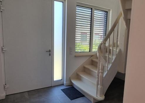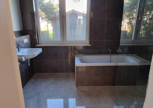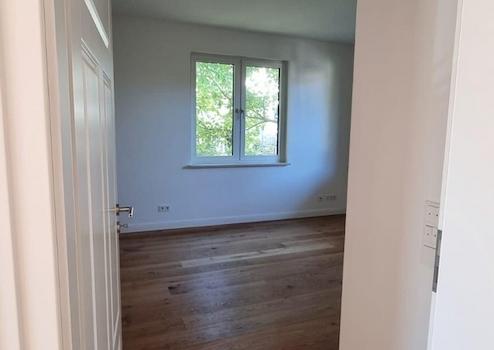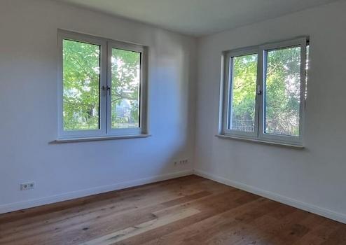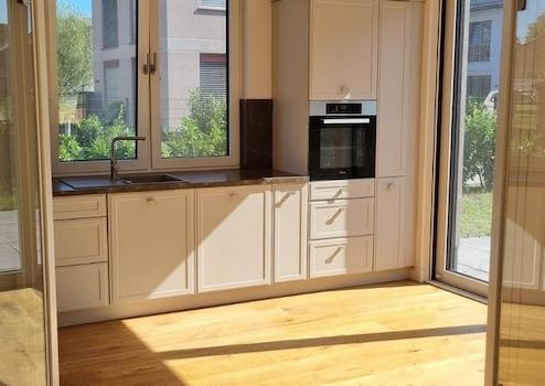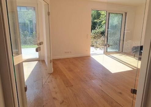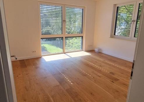 Neubau Villa mit Eichenparkett, Wärmepumpe, Bäder mit großer Walk-In Dusche, Badewanne. Große Fensterfronten, Einbauküche, direkter Zugang zur Sonnenterrasse mit Zugang in den eigenen Garten.