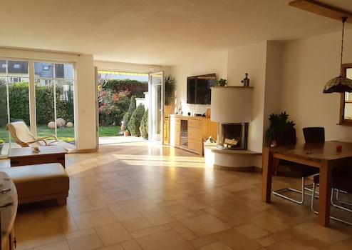 Terrasse, Garten, Keller, Vollbad, Einbauküche, Gäste-WC, Kamin, Parkett, Fliesen