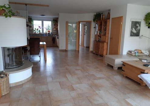 Erdgeschoss und Keller Fliesen, OG und DG Parkett.