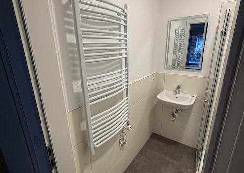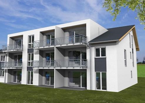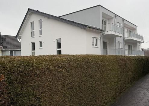 Tolle 2 bis 4-Zimmer Wohnungen in Energieeffizientem KFW55 Haus, Fußbodenheizung, zentrale Luft-Wärmepumpe, kontrollierte Wohnraumlüftung durch dezentrale in den Wohnungen installierte, moderne Einbauküchen in Hochglanz weiß, ebenerdige Duschen, moderne Betonfliesenoptik in Format 30x60cm, 3-fach Fensterverglasung der Firma WERU (innen und außen weiß), elektrische Rolladensysteme, elektrische Bad-/Handtuchheizkörper, WCs mit Softclose System, Waschmaschinen- und Trockneranschlüsse in Masterbad, Fliesenspiegel in Bädern 1,20m hoch außer Dusche (deckenhoch) mit modernen weiß-matten Fliesen (30x60) ausgestattet, alle Innentüren in Röhrenspankerntüren in CPL Ausführung weiß, Ganzglasduschabtrennungen, Alle Wohnungen mit Raufaser und in weiß 2x gestrichen. Alle Räume sowie sind mit modernen LED Leuchten ausgestattet. Die Bäder 70cm breiten Spiegel mit integriertem dimmbarem Licht (kalt/weiss). Moderne Einbauküchen in Lacklaminat weiss hochglanz, Griffe Edelstahloptik metall, Vollauszüge mit Dämpfung, Arbeitsplatte und Spritzschutz in stylischer Betonoptik, Unterschränke mit Auszügen, Besteckeinsatz, Abfallsammler, Einbauspüle inkl. Armatur, Geschirrspüler,, moderne schwarze Wand Abzugshaube, Giro Unterbau- Nischenleuchten, Glaskeramik Kochfeld, Einbau-Backofen.