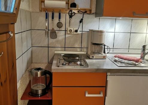 Einbauküche, 2-Platten-Kochfeld, Kühlschrank mit Gefrierfach,