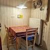 Esstisch mit 2 Stühlen, Töpfe, Pfannen, Teller,