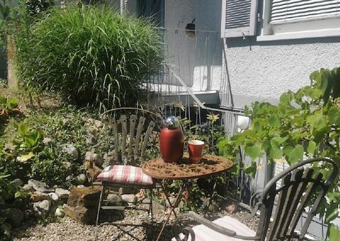 Ruhige, gemütliche Souterrainwohnung mit schönem Blick in den Garten.