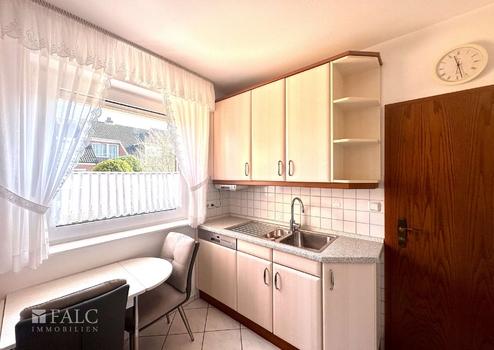 Der Eingangsbereich ist hell und einladend. Vom Flur aus gelangen Sie direkt in Ihre gemütliche Küche. Diese verfügt über eine Einbauküche mit hellen Fronten und jeglichen gängigen elektrischen Geräten. Auch ein kleiner Tisch mit zwei Stühlen findet hier seinen Platz.
