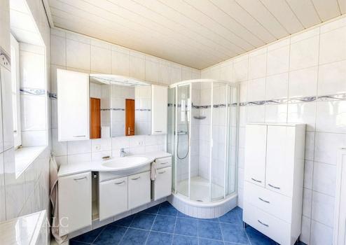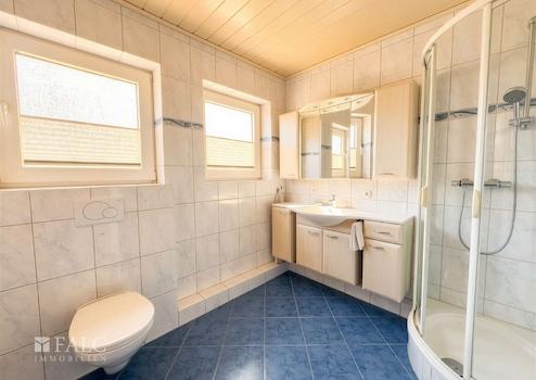 - geräumiges und modernisiertes Bad mit Dusche, Waschbecken, WC, Badmöbeln und Fenster (Fliesen)