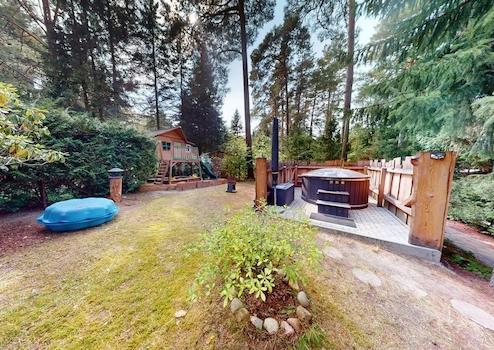 Ein besonderes Highlight ist der Badezuber auf dem Grundstück, der den Freizeitwert erheblich steigert. Ergänzt wird das Angebot durch ein Kinderspielhaus, Grillecke mit Hollywoodschaukel sowie eine große, überdachte Veranda, die als zusätzlicher Aufenthaltsbereich dient.