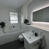 • großes Tageslicht-Badezimmer mit Badewanne, WC und WM-Anschluss.