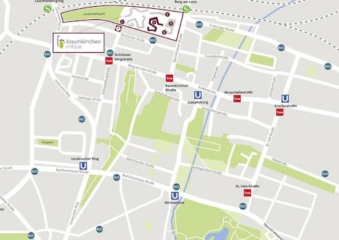 • U-Bahnstation „Josephsburg“ mit der Linie U2 zu Fuß ca. 10min entfernt