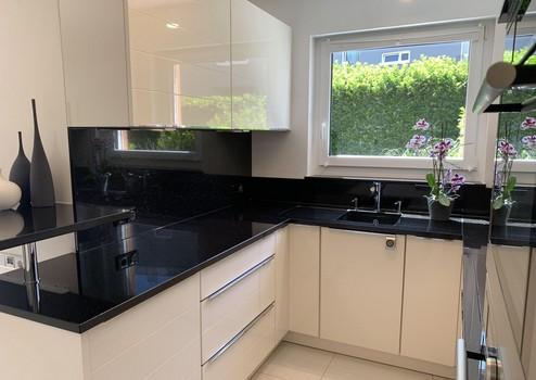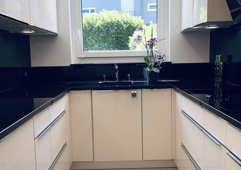 • Küche: Design-Einbauküche mit massiver Granit-Arbeitsplatte und Premium-Technik.