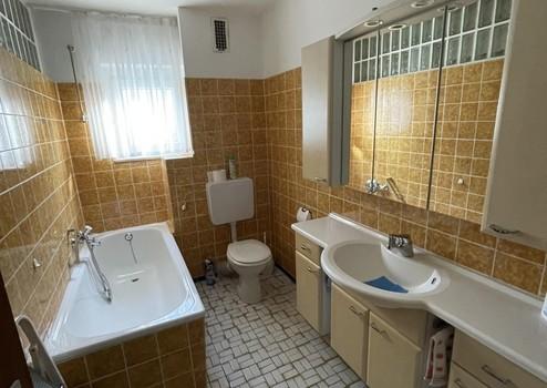 Die weißen Holzdoppelglas-Fenster mit aufgesetzten Rollläden sind gut erhalten, auch weil sie vom Wetter kaum belastet werden. Deswegen wurde bisher nur das dem Wetter vermehrt ausgesetzte Badfenster erneuert. Im EG ist ein pflegeleichter PVC-Bodenbelag, im Wohnzimmer ein Bucheparkettfußboden und im OG teilweise ein Linoleumbelag. Bad und WC sind gefliest.