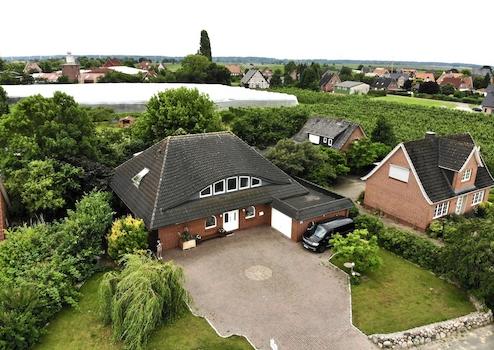 Dieses im Jahr 1998 erbaute, freistehende Einfamilienhaus vereint großzügige Architektur, modernen Wohnkomfort und eine außergewöhnlich ruhige Lage direkt hinter dem Elbdeich im Alten Land.