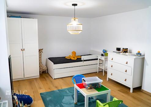 Die Raumaufteilung ist wie geschaffen für Familien: Vier Schlafzimmer, darunter ein Elternschlafzimmer mit eigenem Bad, bieten Rückzugsorte für jedes Familienmitglied. Der praktische Hauswirtschaftsraum erleichtert die Organisation des Familienalltags.