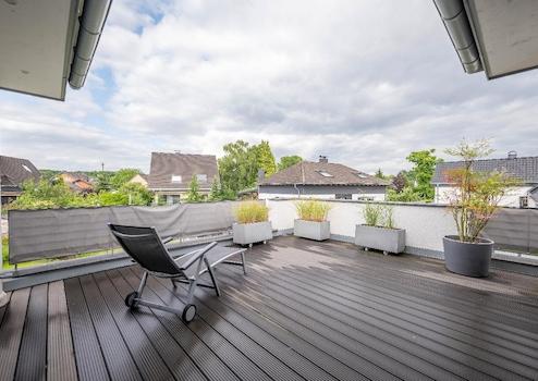 Ein besonderes Highlight bildet die rund 30 m² große Dachterrasse, die sowohl vom Schlafzimmer als auch vom Badezimmer aus zugänglich ist. Sie ist perfekt für Erholung nach einem langen Tag.