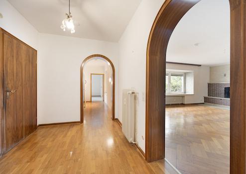 Das Einfamilienhaus mit zwei Einliegerwohnungen wurde 1964 errichtet. Die Immobilie hat insgesamt 13 Zimmer und eine Wohnfläche von 350 m². Das Haus steht auf einem 1.525 m² großen Grundstück. Das Objekt bietet eine solide Basis für Bestandshaltung, Repositionierung oder eine architektonisch geplante Weiterentwicklung.