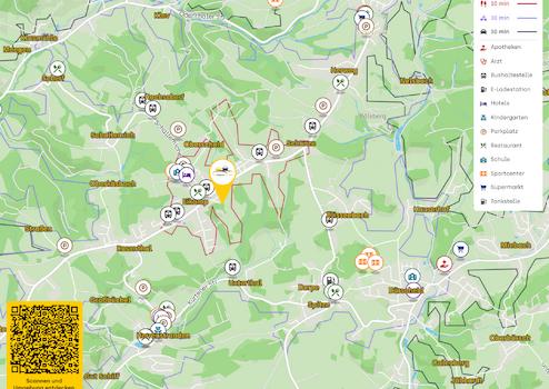 Für Gastronomie und Aufenthaltsqualität sorgen Angebote in der Nähe, zum Beispiel der Eikamper Hof in ca. 0,5 km sowie weitere Restaurants im Umkreis von ca. 1,4 bis 1,7 km. Für die individuelle Mobilität sind Parkmöglichkeiten im Umfeld vorhanden, zudem E-Ladepunkte in ca. 2,4 bis 2,5 km.