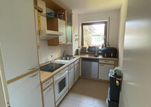 Der Wohnbereich ist freundlich und gut geschnitten, die Wohnung verfügt über eine Einbauküche.