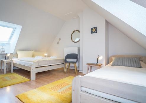 Dachgeschoss: Schlafzimmer mit Doppelbett und Einzelbett