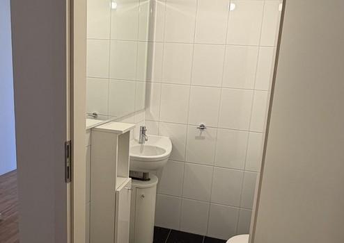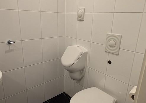 – Gäste-WC inkl. Urinal, hochwertigem Quarz-Boden & maßgefertigtem Spiegel (bleibt drin)
