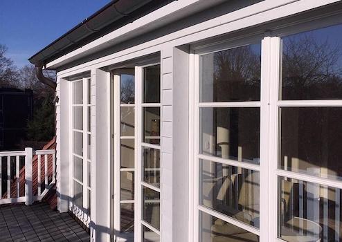 Das Dach wurde mit ökologischem Dämm-Material isoliert und ist mit einer roten Tonpfanne neu gedeckt. Alle Fenster wurden als Holzfenster erneuert und haben Isolierglas.
