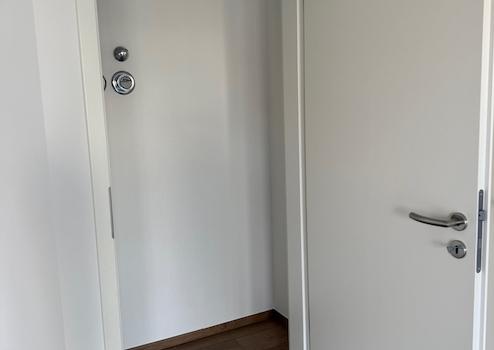 Vom Hauseingang gelangt man direkt rechts zur Wohnung.