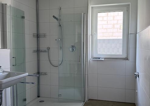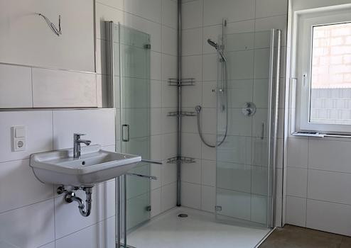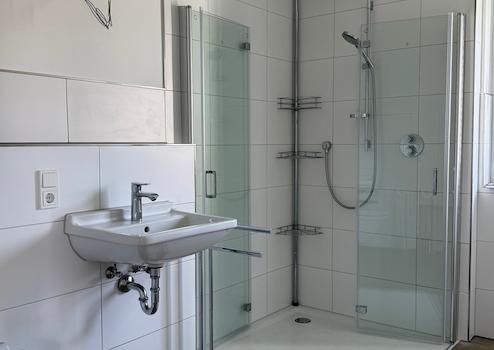 . Voll ausgestattetes Badezimmer mit bodengleicher Dusche