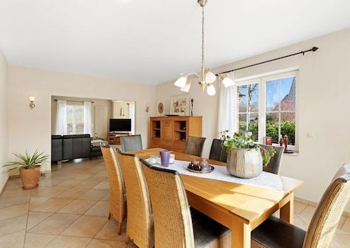 Auf ca. 175 m² Wohnfläche entfaltet sich ein großzügiges Raumangebot mit insgesamt vier Zimmern, darunter drei gemütliche Schlafzimmer. Das Badezimmer überzeugt mit Fenster, Badewanne und Dusche und wird durch ein separates Gäste-WC ergänzt. Zwei Terrassen laden dazu ein, die Ruhe des großzügigen Grundstücks von 1.134 m² in vollen Zügen zu genießen – ob bei einem entspannten Frühstück im Freien oder lauen Sommerabenden.
