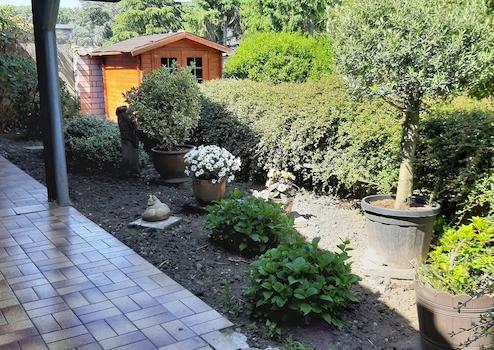 Individuell ausgestattetes freistehendes Haus mit Fernblick, einem uneinsehbaren Innenhof und einem uneinsehbaren Grundstück mit einem großen Garten! Das Mietobjekt ist nur etwas für Gartenfreunde! Details werden nach ...