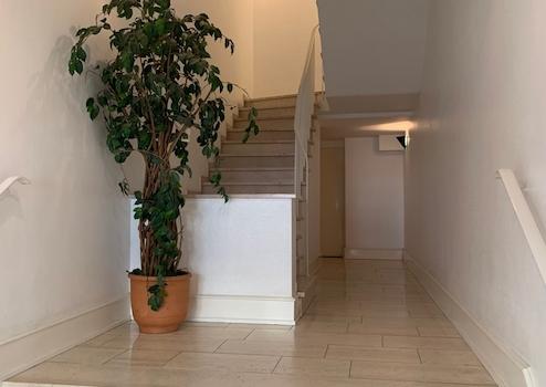 Direkt links erhält man Zugang zu einem Fahrradraum.
