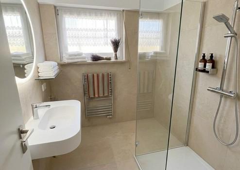 Die beiden Schlafzimmer überzeugen durch ihre angenehme Größe und ihre helle Atmosphäre. Ob als Elternschlafzimmer, Kinderzimmer, Büro oder Gästezimmer – hier ist Raum für individuelle Gestaltung. Das Bad wurde vollständig modernisiert und präsentiert sich mit einer ebenerdigen Dusche, hochwertigen Fliesen und modernen Sanitärelementen in zeitlosem Design. Das separate WC sorgt für zusätzlichen Komfort.