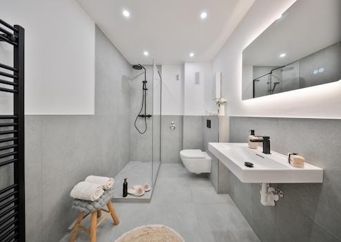- Modernes Badezimmer mit hochwertiger, komplett neuer Ausstattung