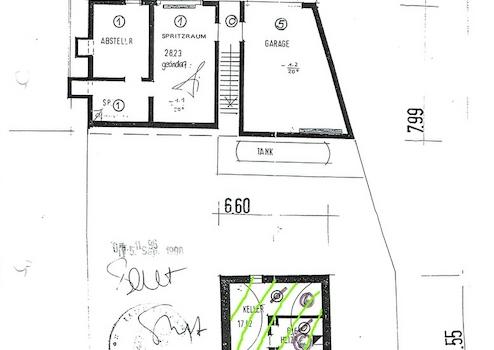 Der Lagerraum/Werkstatt im EG kann eventuell auch als Garage benutzt werden.